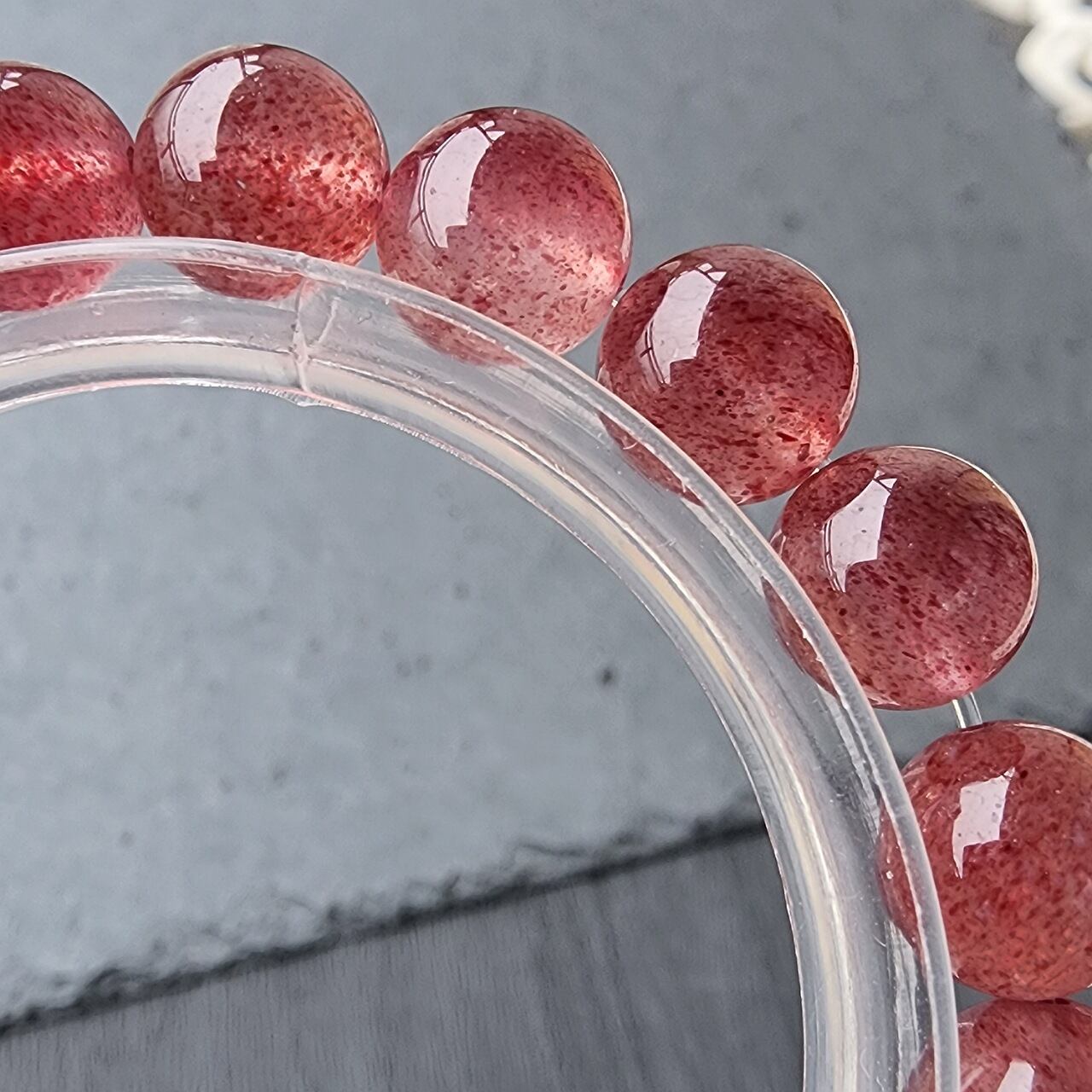 透明度抜群の水晶に鮮やかなディープピンクのマンガンエピドードが鱗片状に入っていている天然石になります。