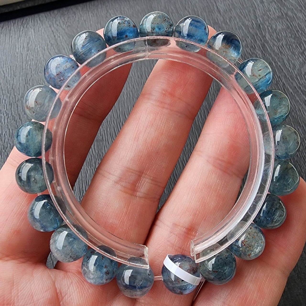 こちらはガーネットが内包されたとても美しく珍しいブルーカイヤナイトになります。