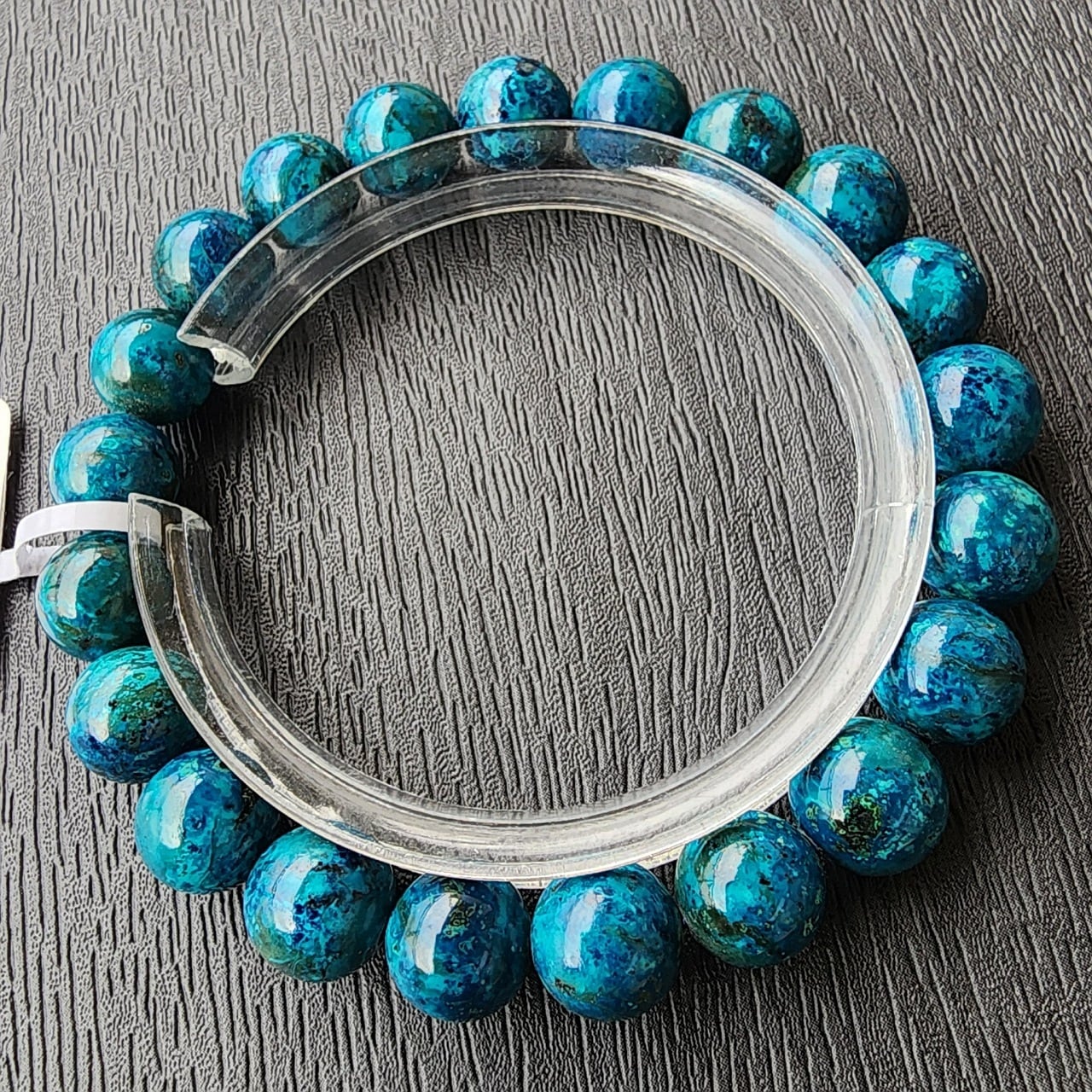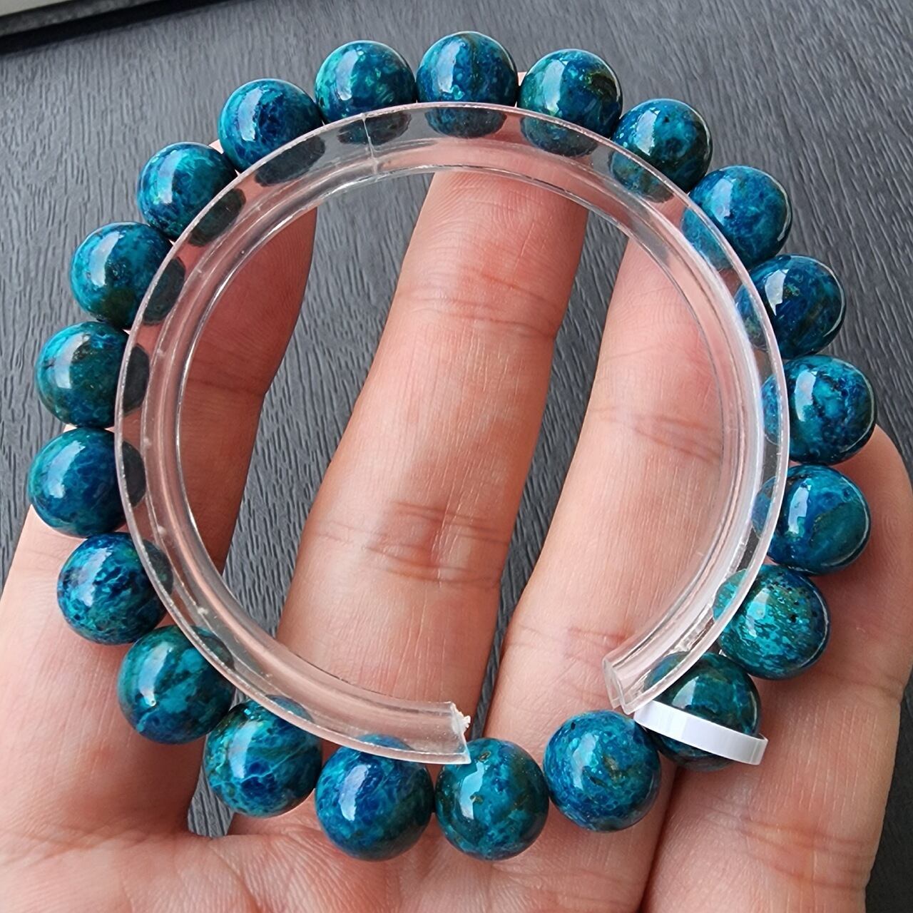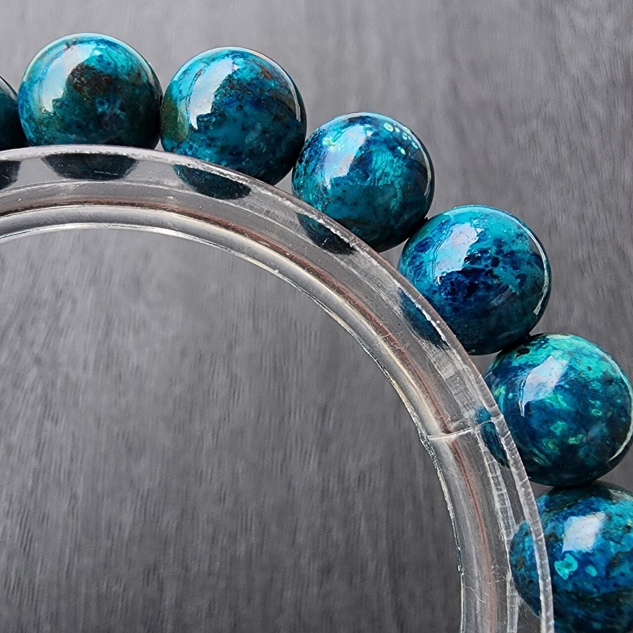 単独でなくマラカイトやアズライトなど他の銅関連鉱物と混じり合って産出され、青色や青緑色の美しい縞模様を持つのが特徴です。