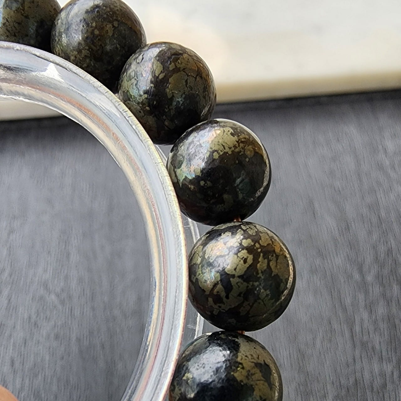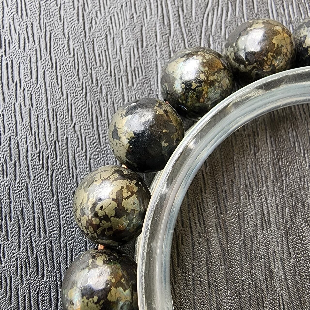 マグネタイトと金色のパイライトが混ざり有った天然石になります。とてもずっしりと力強く見る者を魅了してくれる天然石になります。