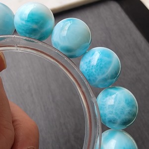 ラリマー(ブルーペクトライト)を使用した天然石ブレスレットになります。カリブ海に浮かぶ小さな島、ドミニカ共和国で産出され、空と海の色を思わせるような美しくやさしいブルーの色が特徴です。