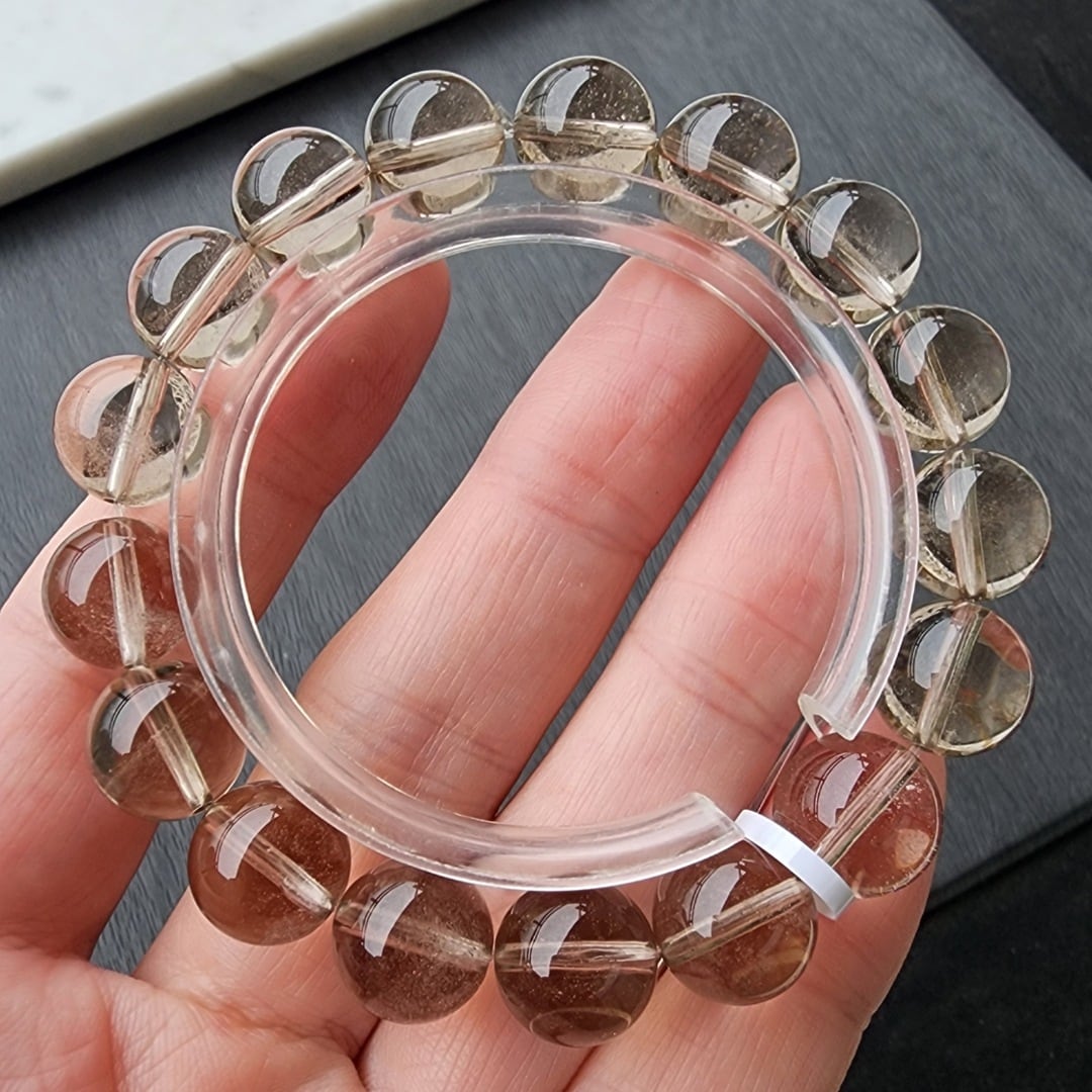 【 スモーキーレムリアンクォーツ 】 コロンビア ボヤカ州ムゾー鉱山産 ■新品 ■スモーキーレムリアンクォーツ …約11.5~11.9mm(ギャランティカード付属) ■ブレスレット内径…約16.5㎝